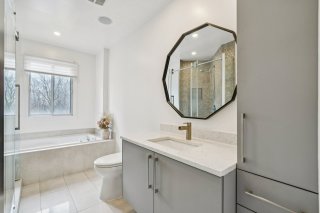 * Salle de bain rénovée (douche vitrée + mosaïque)